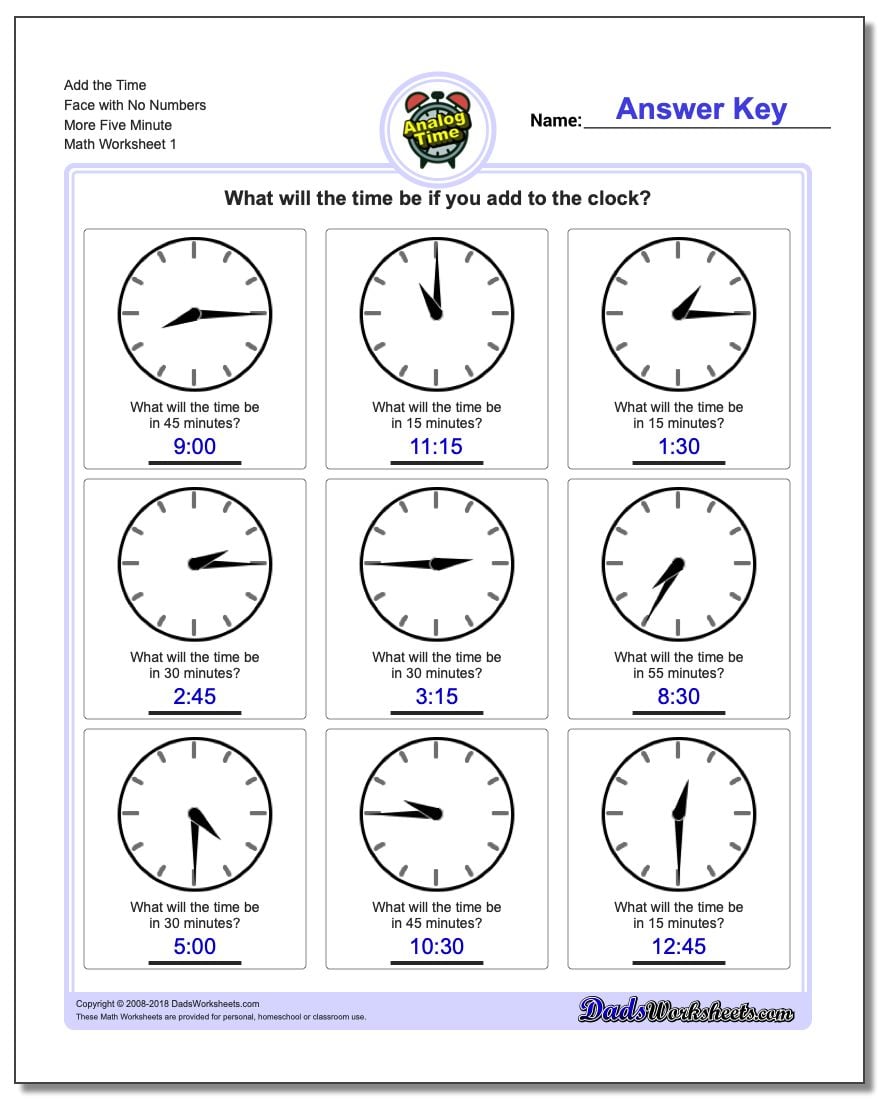 quarter minute telling addition worksheets worksheet five hour analog hours face numbers dadsworksheets math